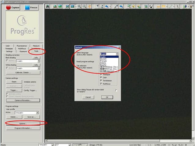 Mit der ProgRes® CapturePro Bildaufnahmesoftware ist es möglich, maximal 5 ProgRes® Mikroskopkameras zur selben Zeit an einem PC zu betreiben.